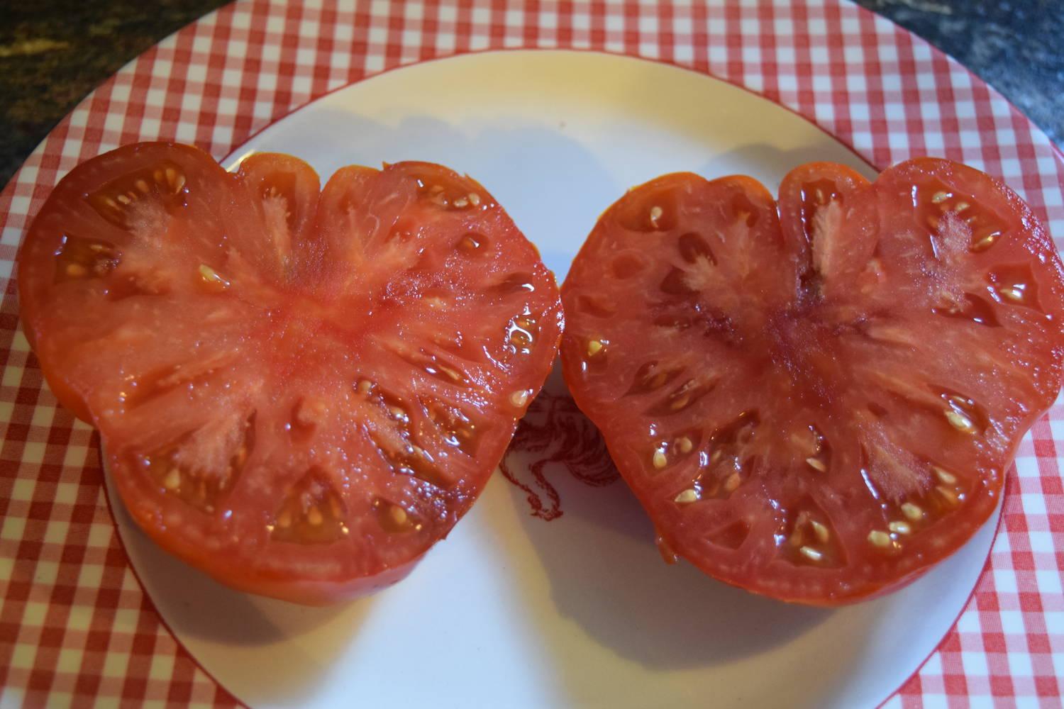 From Tatiana’s TOMATObase: A natural cross of Yellow Brandywine and an unknown red parent; de-hybridized by Carolyn Male (NY MA C) for five years; named and released by Carolyn Male and Craig LeHoullier (NC LE C) in 1996 during the period they co-wrote a heirlomm tomato newsletter – Off the Vine (which OTV stand for). One of the 100 heirloom tomatoes noted in Carolyn J. Male's book "100 Heirloom Tomatoes for the American Garden".