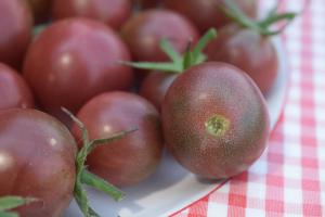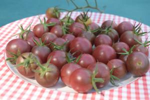 A curiously different dark cherry with incredible rich and sweet flavor. It’s almost a combo of Black Cherry and Sungold! Incredibly productive. I really, really like this one.