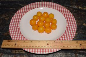 A yellow cherry with tons of flavor. 1” fruit, about the size of a quarter have sweetness but with a real depth of flavor. Very prolific. It does well in hot or cool summers and keeps very well at room temperature. A favorite of many.