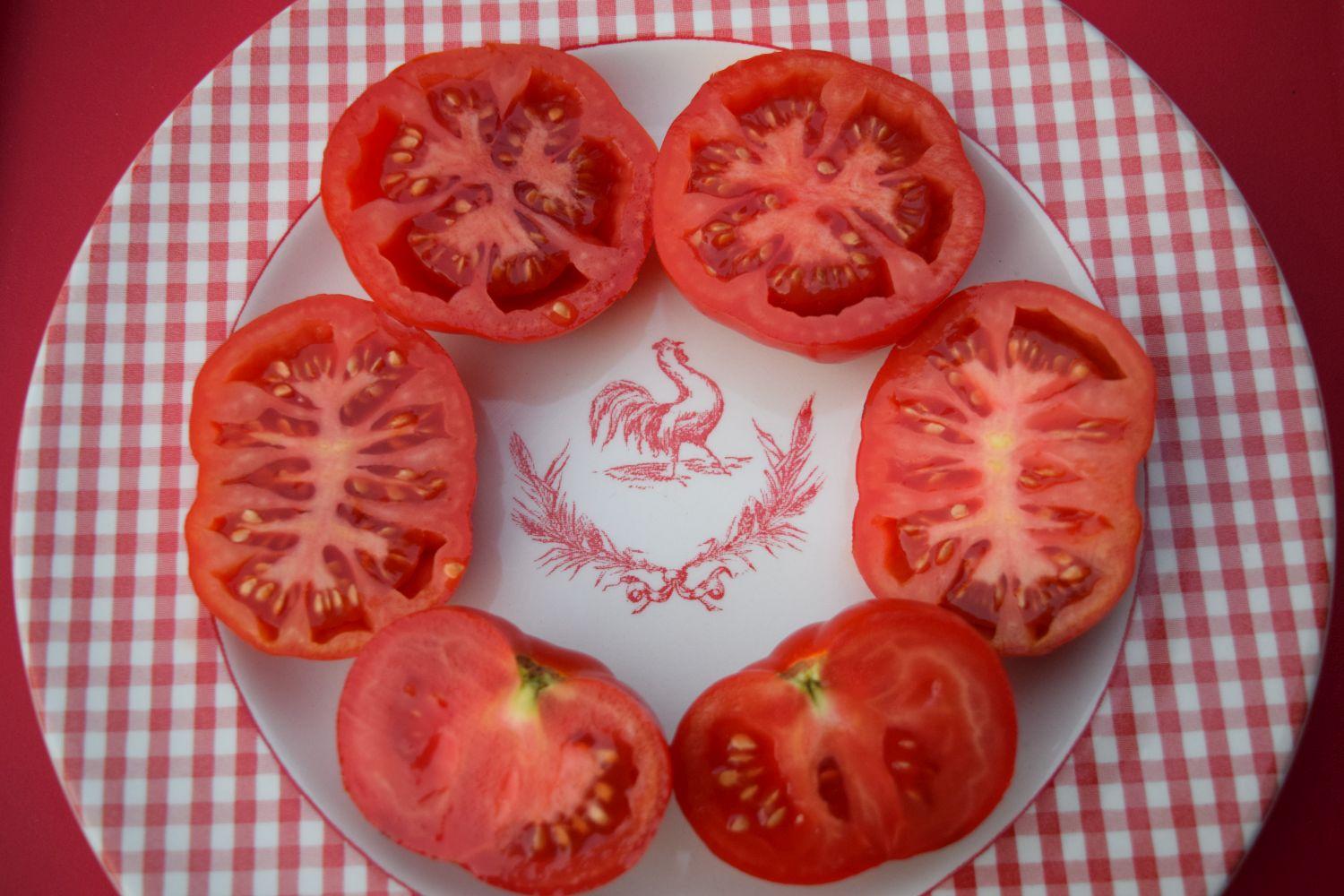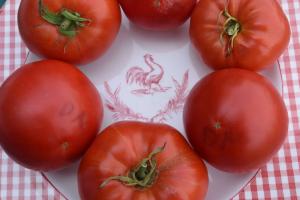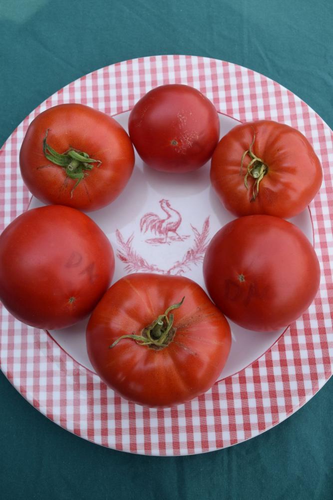 An old commercial variety from Asgrow Seed Co in New Hampshire in 1956. It was a stabilized selection from Homestead - another old one that had complicated parentage – (Victor x Dobbies Champion) x Pan American x Rutgers). Some of these old open pollinated tomatoes are really nice and this is one of them.
