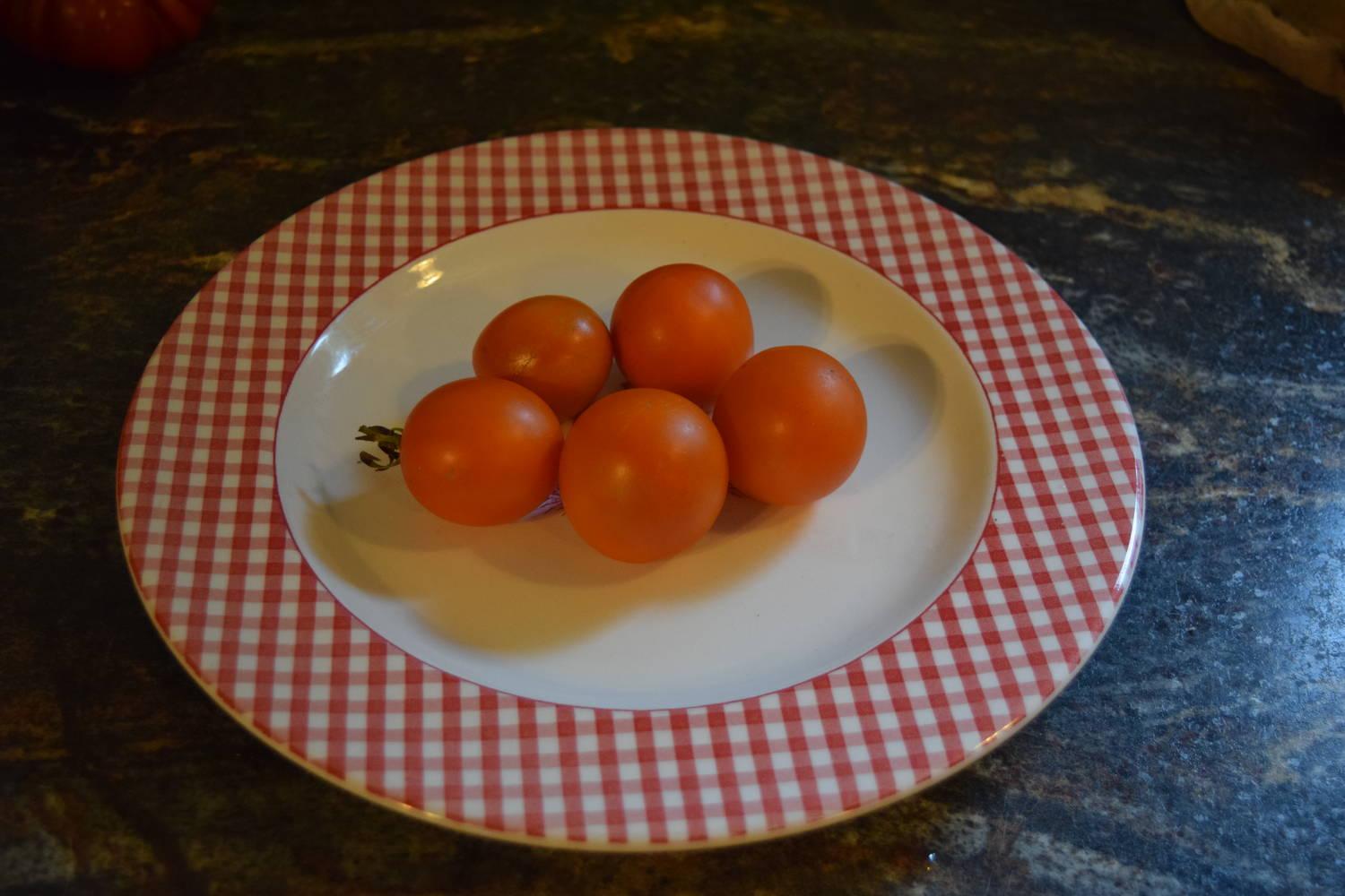 Jaune Flamme is a fiery-orange tomato, famous for its intense, sweet fruity flavor. It produces large quantities of round 3-6 oz tomatoes that are great for salads or snacks. They also make wonderful dried tomatoes.