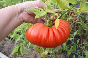 This tomato has been listed in the SSE Yearbooks since 1997, but not many members have relisted it. It was first listed by Bill Minkey who describes it as bell shaped, almost heart shaped, large red fruits. Original seeds are from Roberta Helpman, Ontario, Canada, who received it from an acquaintance who got it from travelling in Israel.