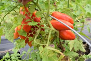 This is a very special, uncommon paste tomato that comes from Africa and has extreme production. The fruit are bright red and pepper shaped, about 3-4” long with meaty flesh that has a wonderful spicy flavor. Very unusual!