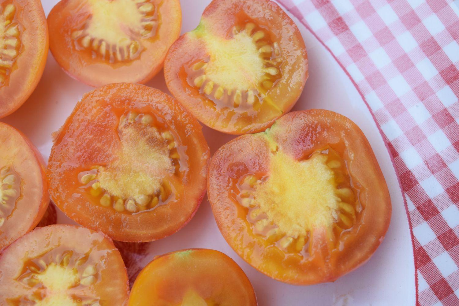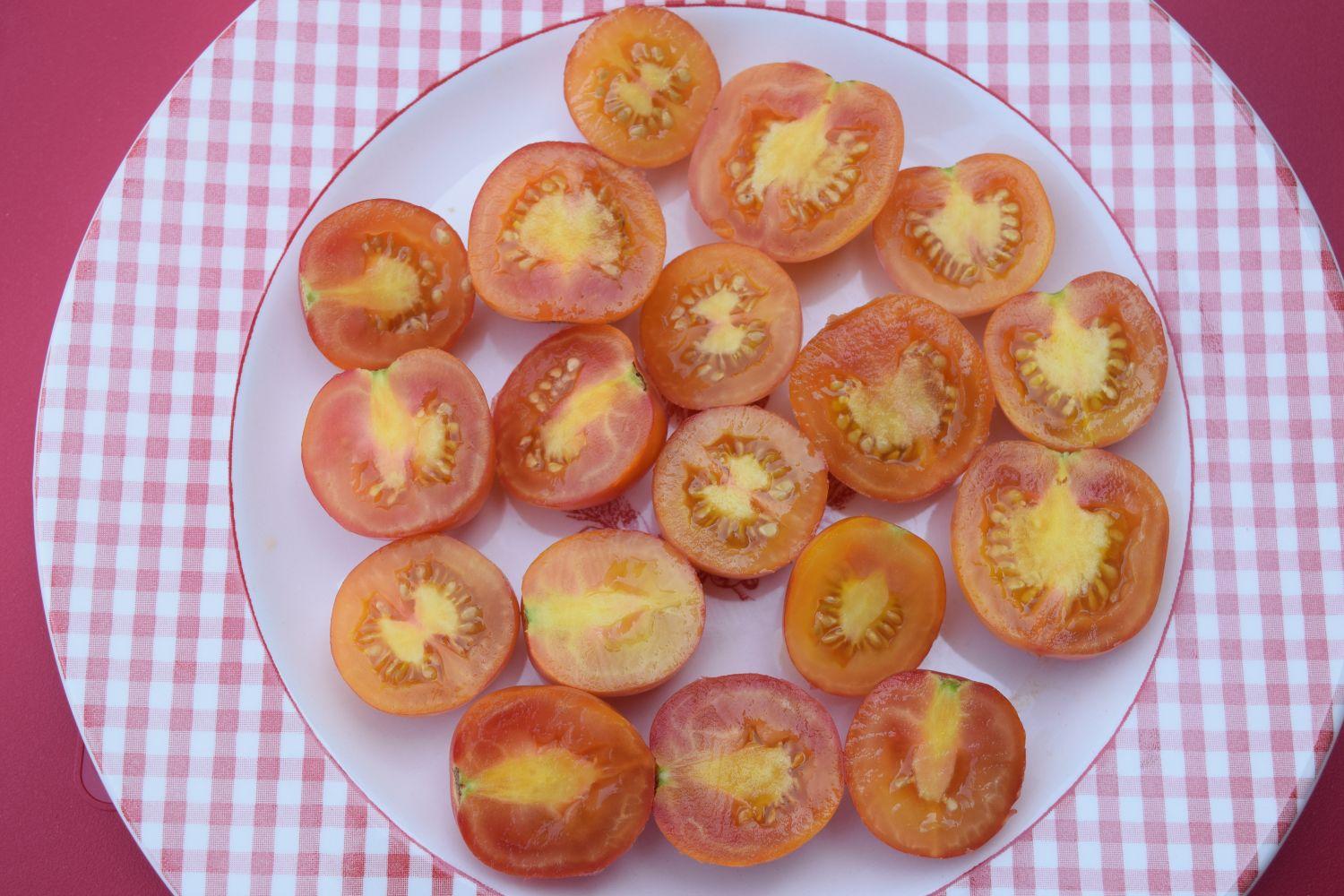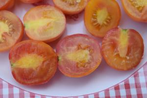 This was developed by 2 friends from my tomato forum. One lived in Canada and the other in Florida – Karen and Marcia – thus the name. They were able to get 2 growing seasons to speed up the stabilization process. They have a whole line of colors. Karen loves potato leaved tomatoes (like me!) and is breeding awesome new ones for us to enjoy.