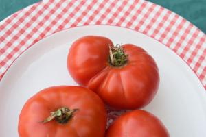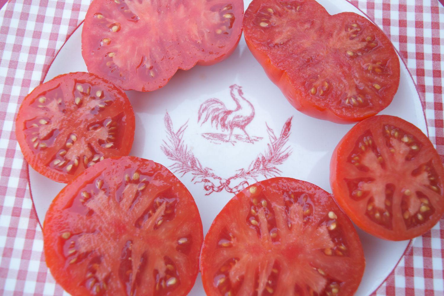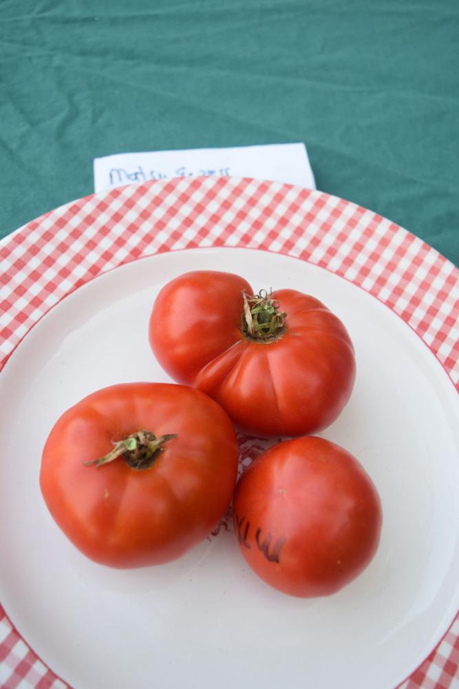 Matt Oathout of Alaska Midvalley Greenhouse Tomato Fort (and also a member of my tomato forum) worked with a friend – Sherry Shiesl – also of Wasilla who did the crosses – to try and create some good tasting early varieties that work well in northern climates. This is one of them – a cross of Cowlicks Brandywine and Bloody Butcher. They did a fantastic job with this one!
