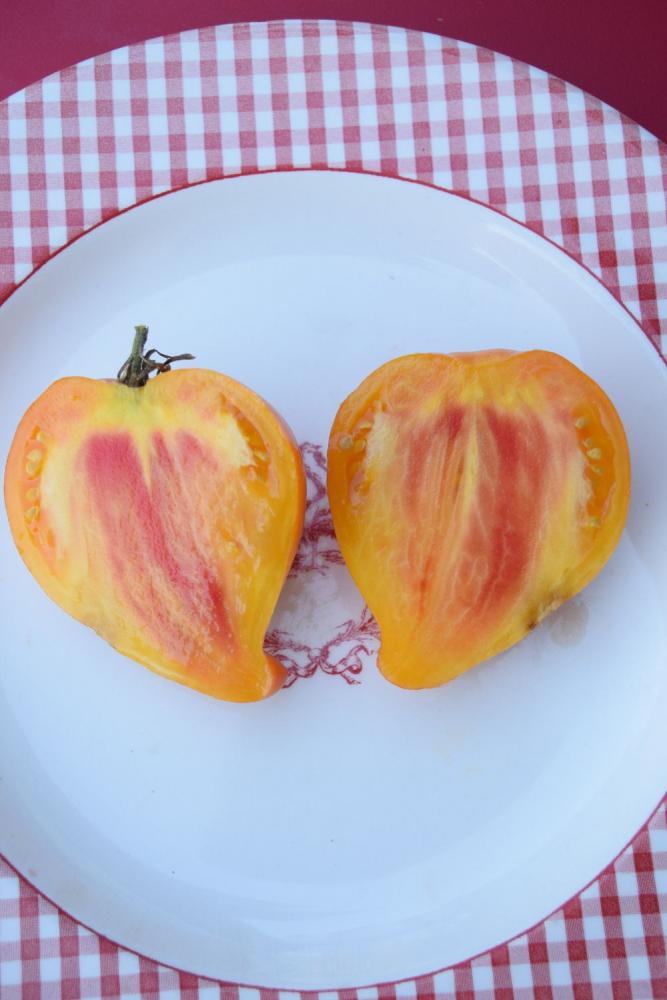 This was bred by Karen Olivier of Ladysmith, Canada and is part of her True North Series. She has a love for potato leaved tomatoes and has been breeding up a storm of wonderful varieties great for our northern conditions. I’m so glad to have many of her varieties and adding more when I can.
