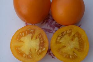 Another cute, smaller bi-color with fruit averaging 4-8 oz. It has very tender skin which is nice for eating but you will need to pick before heavy rain to prevent cracking. It will ripen fine inside on the counter. Very nice production of these sweet/tart and lovely little yummies. Some people think it has citrus overtones.