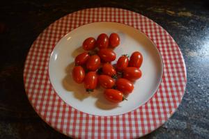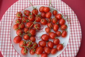 Pretty little red, grape shaped fruits with an unusual matte finish. Fruit are sweet with plenty of flavor. Tastes great fresh but I also use them for drying as there is not much juice. Plants are vigorous and produce well. Fruit also keeps well – good for leaving out in a bowl to snack on.